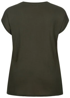 JACQUELINE DE YONG JDY By ONLY Damen NOOS Ribbed V-Neck T-Shirt Mit Frilldetails Mineral Gray Grün